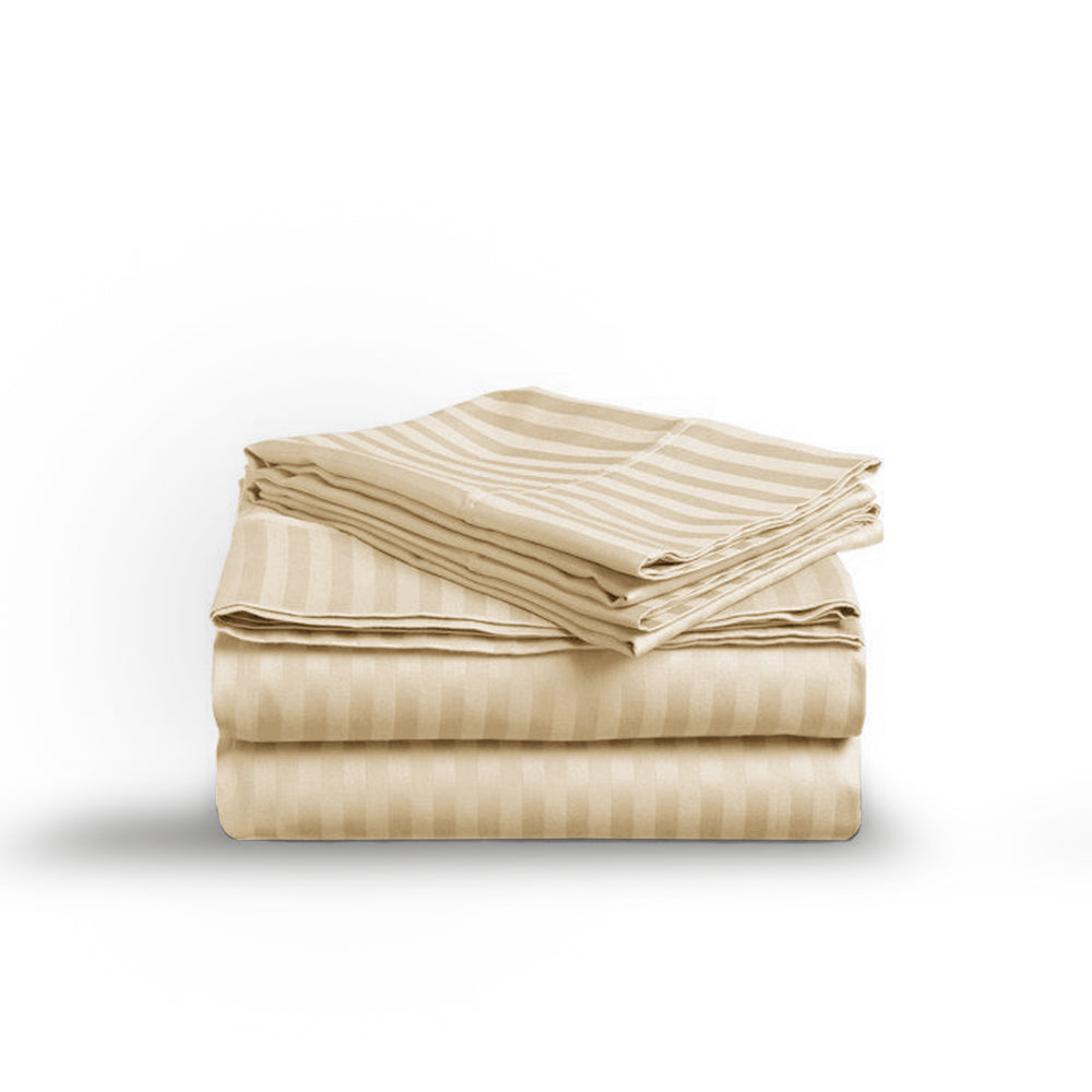 Beige Stripe Sateen Flat Sheet Set