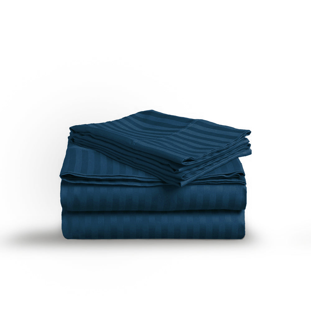 Bring your premium travel experience home with pure cotton striped flat sheet sets.