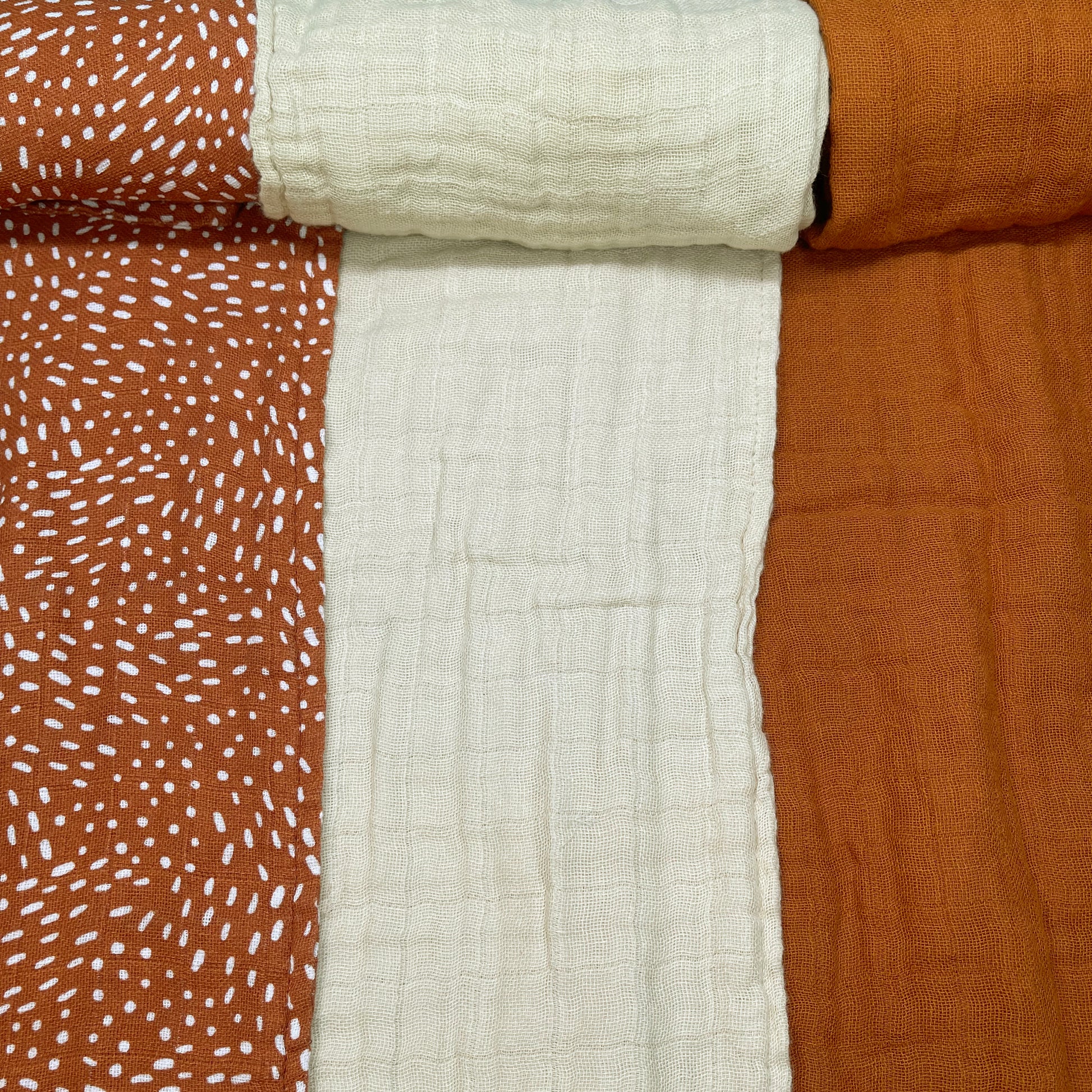 • 2 layers of premium open-weave 100% cotton muslin (washed).