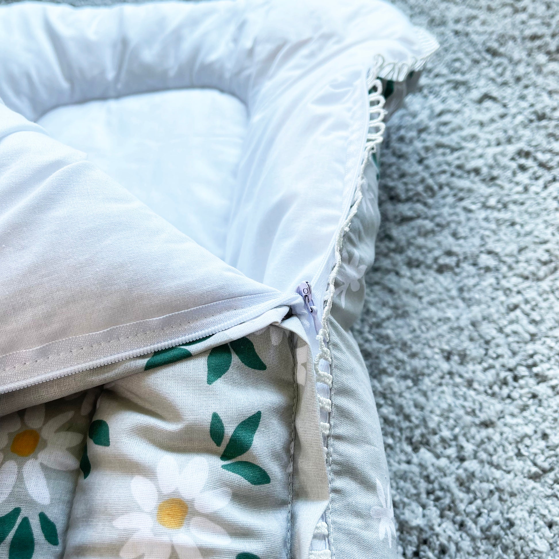 Made from 100% Cotton, this lightweight nest is designed to keep your little one cozy and secure. With two zippers on both sides, it offers quick and easy access for hassle-free diaper changes and adjustments.