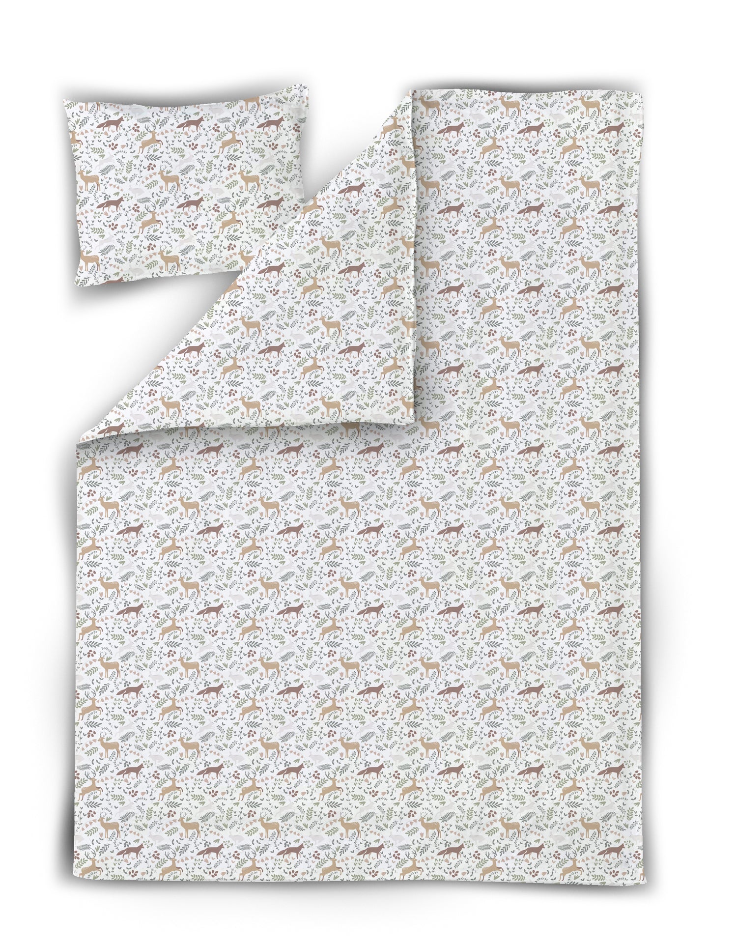 Introducing our 100% cotton kids duvet cover set featuring an exciting and playful Fox & Reindeer design! Made with high-quality, breathable cotton, this duvet cover set is perfect for your little one's bedroom.