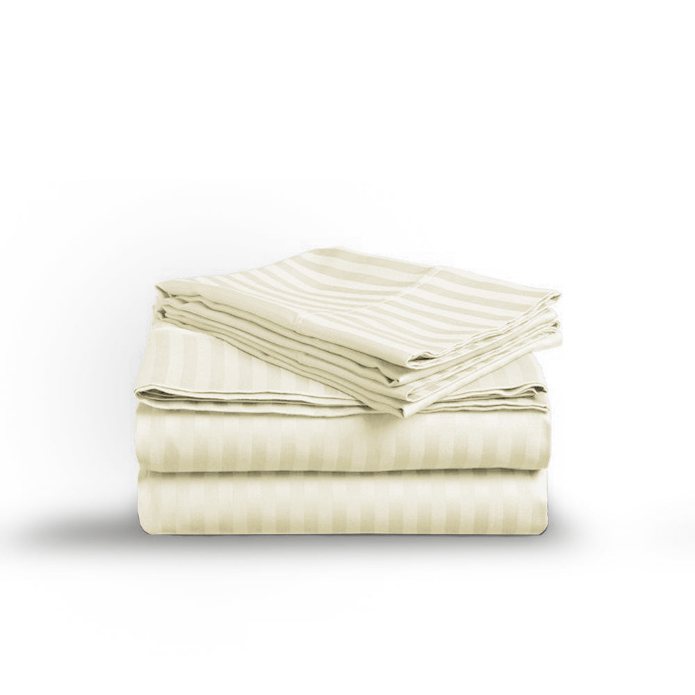 Bring your premium travel experience home with pure cotton striped flat sheet sets.