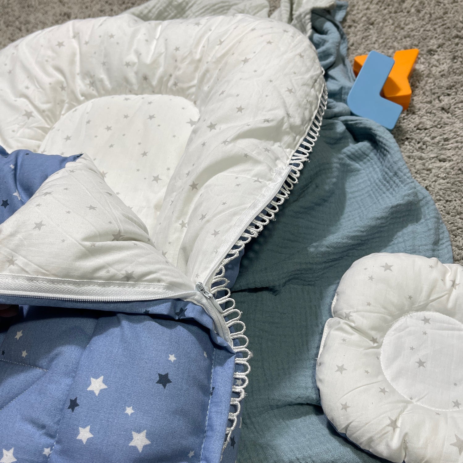 Made from 100% Cotton, this lightweight nest is designed to keep your little one cozy and secure. With two zippers on both sides, it offers quick and easy access for hassle-free diaper changes and adjustments.